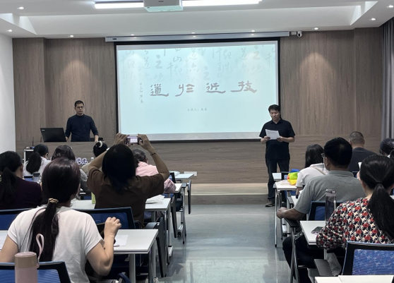9月23日下午,公司邀请中国书法家协会会员、河南省第六届楷书委员会委员、第七届隶书委员会委员、信阳市书法家协会理事、William希尔官网入口客座教授熊愚于实训楼二楼艺言堂作“技与道”专题讲座。本次讲座由公司经理邹东升主持,“国培”美术骨干教师培训班成员参加。
