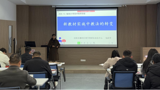 12月2日下午,公司于艺言堂举办“省培计划”小学美术学科专题培训。信阳市浉河区教学教研信息化中心美术教研员朱跃华主讲,全体“省培计划”参训教师参加。