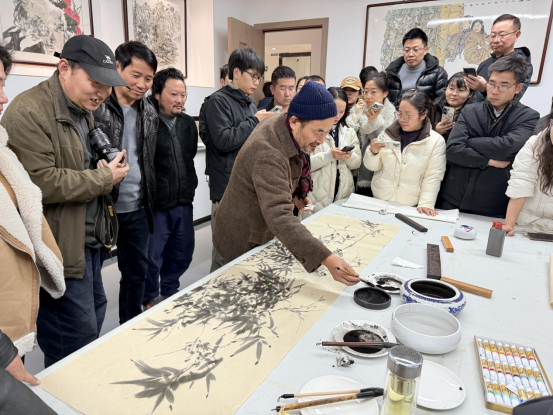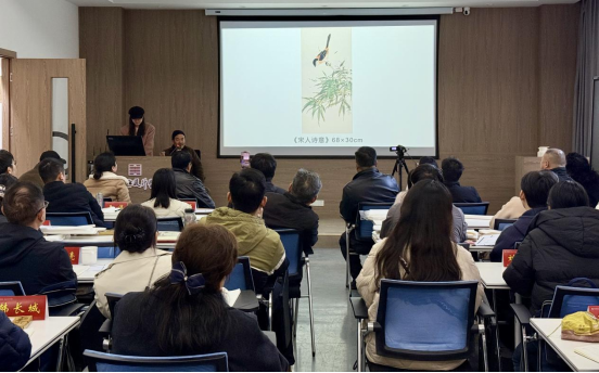 讲座以“笔墨意蕴与创作心路”为主题。理论环节,连教授结合代表作解析创作灵感、布局章法及笔墨语言,分享传统文人画精神与时代气息的融合路径,坦诚剖析创作挑战,让听众深刻感受艺术严谨性与魅力。随后的现场范画环节,他即兴挥毫,边创作边讲解用笔轻重、用墨浓淡及水分控制技巧,完整呈现花鸟作品创作全过程,直观传递“外师造化,中得心源”理念。