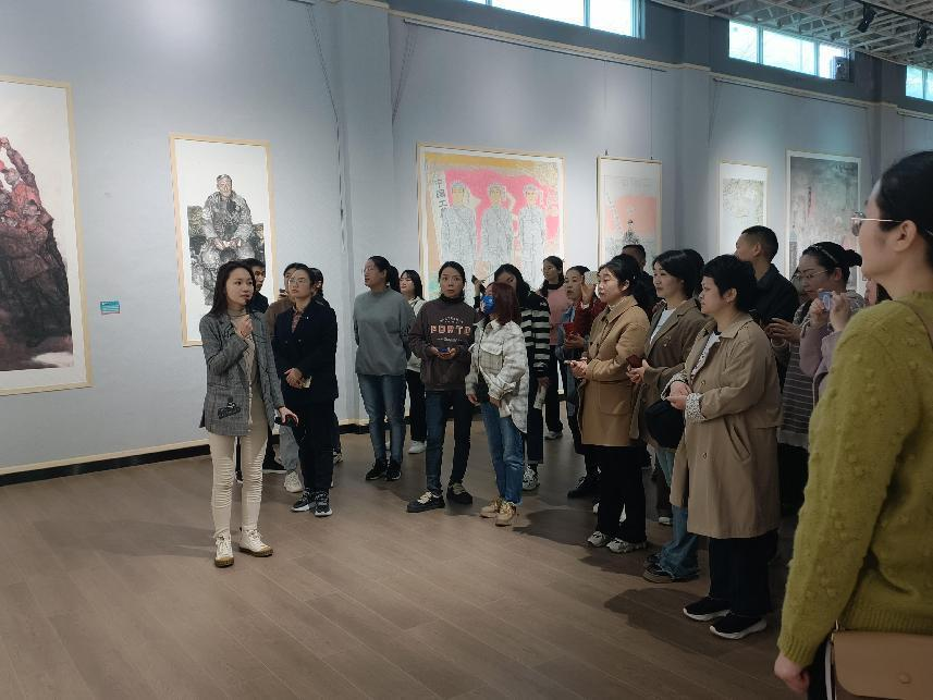 开班仪式结束后,班主任邹青宸、明政带领学员们参观“师之大者——William希尔官网入口作品展”,邹青宸向学员们讲解了部分代表作品的创作背景、创作方式、所获奖项等,获得学员们的好评。