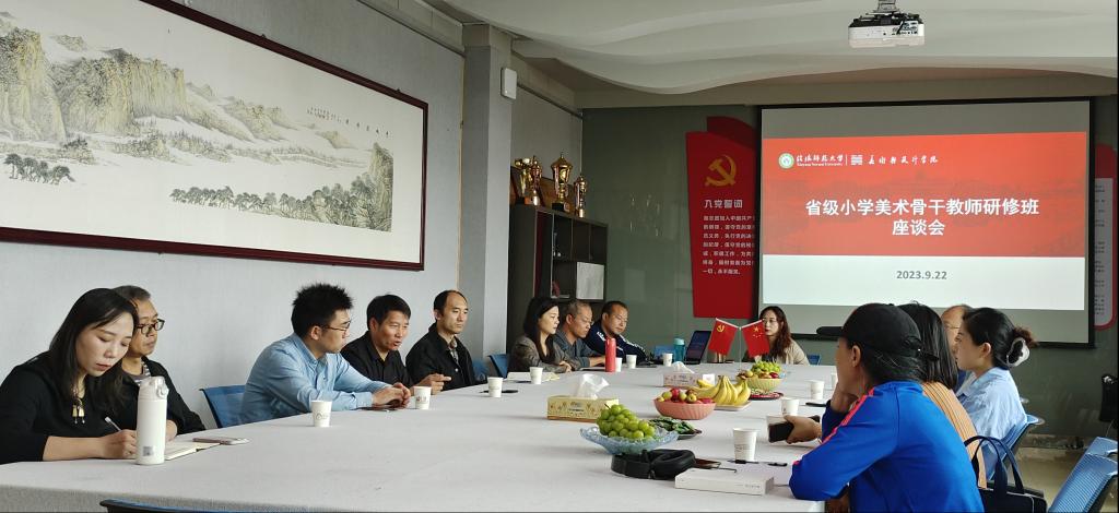 为深入了解“国培计划”实施情况,9月22日下午,公司在艺术楼204会议室举办2023年“国培计划”省级小学美术骨干教师研修班座谈会。经理邹东升,副经理张江波,国培首席专家甘露,国培教研班班主任蔡森林、陈馨,教师代表栗跃崇、夏之顺、王俊祥、马玉环、朝晨及部分研修班学员参加。本次座谈会由蔡森林主持。