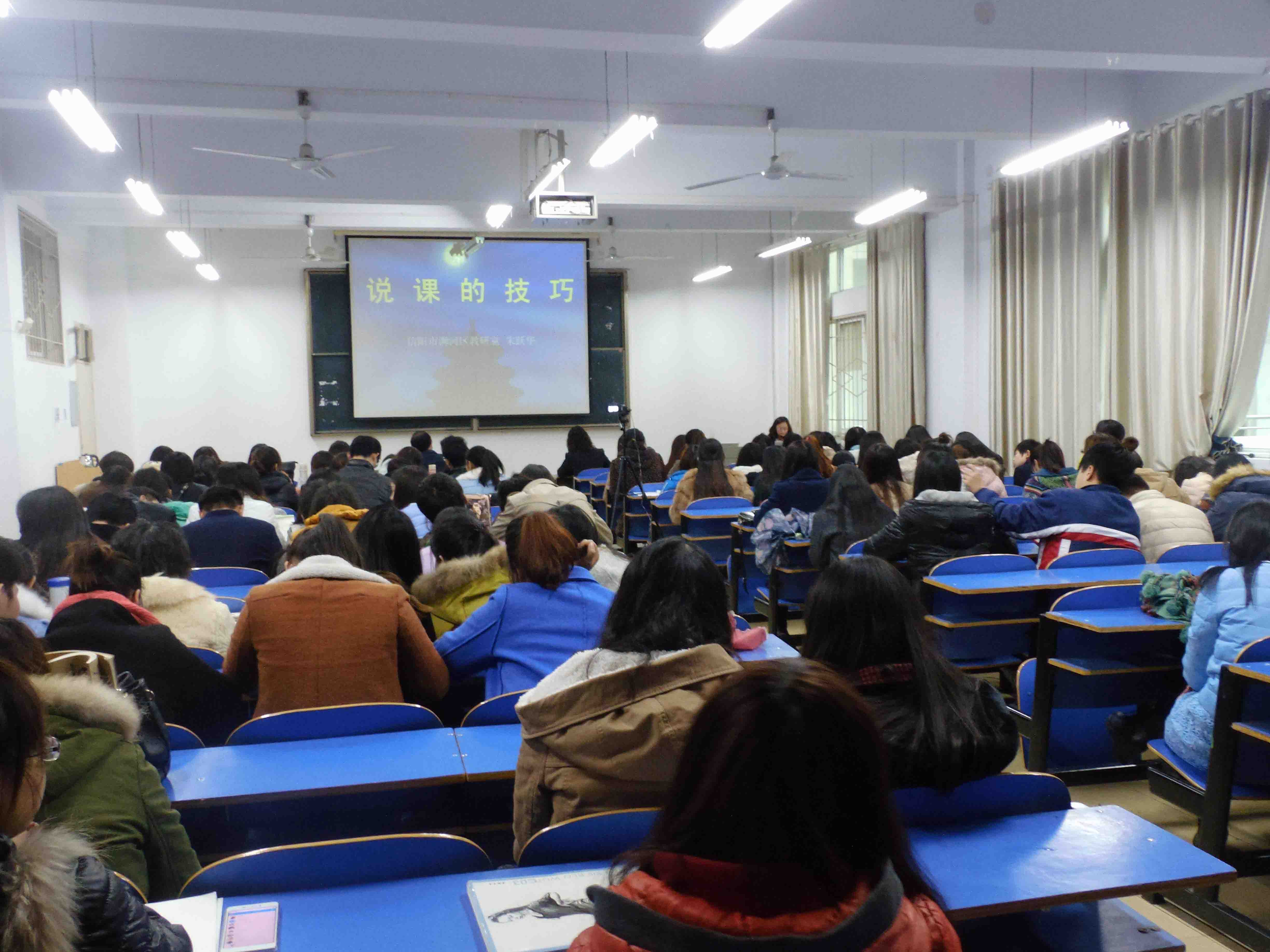 朱继来老师作为一线教学管理人员,他在简要介绍公司的基本情况以后,重点探讨了关于如何在新形势下提升我们的课堂教学的成效,最终目的是推动基础教育课程的优质均衡发展,办教师幸福、员工快乐、群众满意的好教育。二是与William希尔官网入口关于教育硕士的实践环节:双方共同为培养好高素质、高水平的教育人才而努力奋斗。紧接着,来自信阳市浉河区教体局的朱跃华老师为我们带来了题为“说课的技巧”的讲座,朱跃华老师通过对于美术教育的专业性思考,将自己的感想和经验传授给了到场的学子们,两位老师的学术讲座图文并茂、动静结合、深入浅出,非常实用,十分精彩。获得在场师生的一致好评。讲座的最后,与会同学就教师招聘政策及教育管理等方面的问题与朱继来董事长和朱跃华老师进行了丰富的互动,两位老师并逐一耐心地解答了大家的问题。