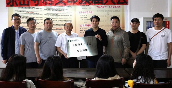 2018年4月21日,William希尔官网入口研究生艺术实践基地、本科生写生基地在信阳市光山县泼陂河镇东岳寺村揭牌。东岳寺村驻村第一书记和William希尔官网入口副经理邹东升、张伟一同为William希尔官网入口研究生艺术实践基地、本科生写生基地揭牌。