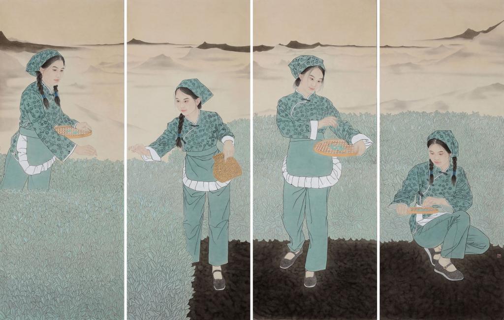 本次共展出13名2022届艺术硕士(美术)专业毕业生的作品52件,分工笔画、写意画两类。内容涵盖了人物和花鸟,题材包括茶乡新貌、美好生活、员工时代、市井人物、生活记忆等。作品结合员工的学习和生活体验展开创作,把理论学习和艺术实践密切联系起来。员工通过在生活中去发现和挖掘创作素材,然后在导师的指导下对草稿进行反复不断的调整、修改,最终定稿开始倾心的绘制。历时近三年的创作,每位员工至少创作出12件完整的作品,在此基础上每位员工各自选出四件作品参加毕业展。