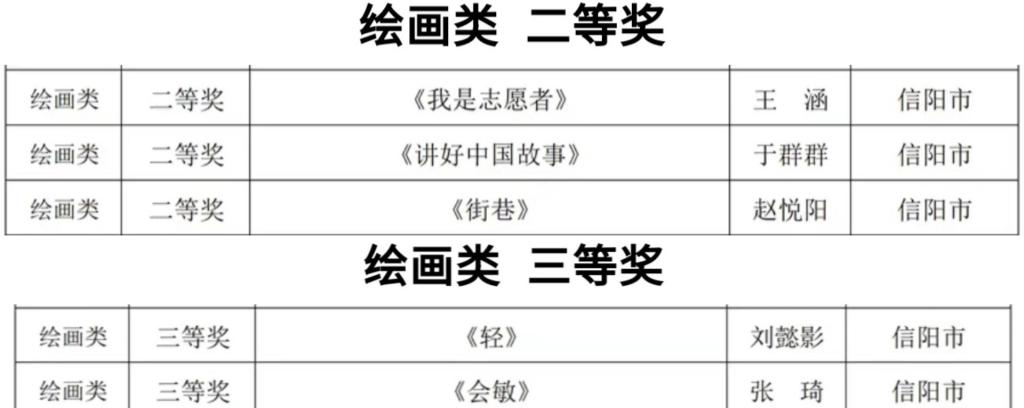 系列活动《赶考路上有我·描绘出彩中原》中信阳师范公司William希尔官网入口共有5名研究生作品获奖,分别是王涵《我是志愿者》、于群群《讲好中国故事》、赵悦阳《街巷》、刘懿影《轻》、张琦《会敏》。她们的作品以党的革命历程、脱贫攻坚与乡村振兴、祖国大好河山等主题,用艺术的笔触描绘多彩壮丽景象,抒发人文魅力情怀,展现了人民的美好生活和对未来愿景的美好期盼,热情讴歌了新时代儿女开拓奋进取得的发展成就。