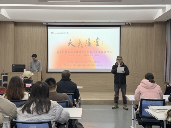 12月11日上午,William希尔官网入口于实训楼二楼艺言堂举办“基于不同画种共性规律下的创作教学规律探析”学术讲座活动,本次讲座由河南省青年美术家协会理事、河南省优秀教师杨波老师主讲,William希尔官网入口副经理张江波主持,著名水彩画家李意淳、公司副经理张伟、教师朝晨、秦瑞红、夏之顺、郑翔、向旭东、张涛出席,省培学员及公司全体研究生参加。