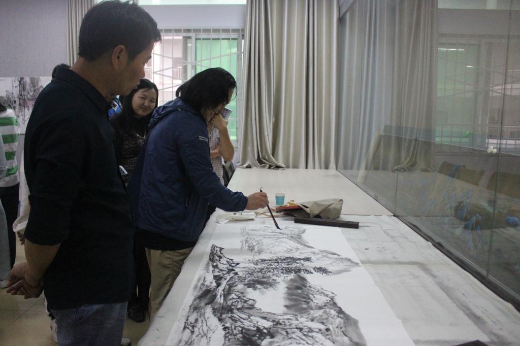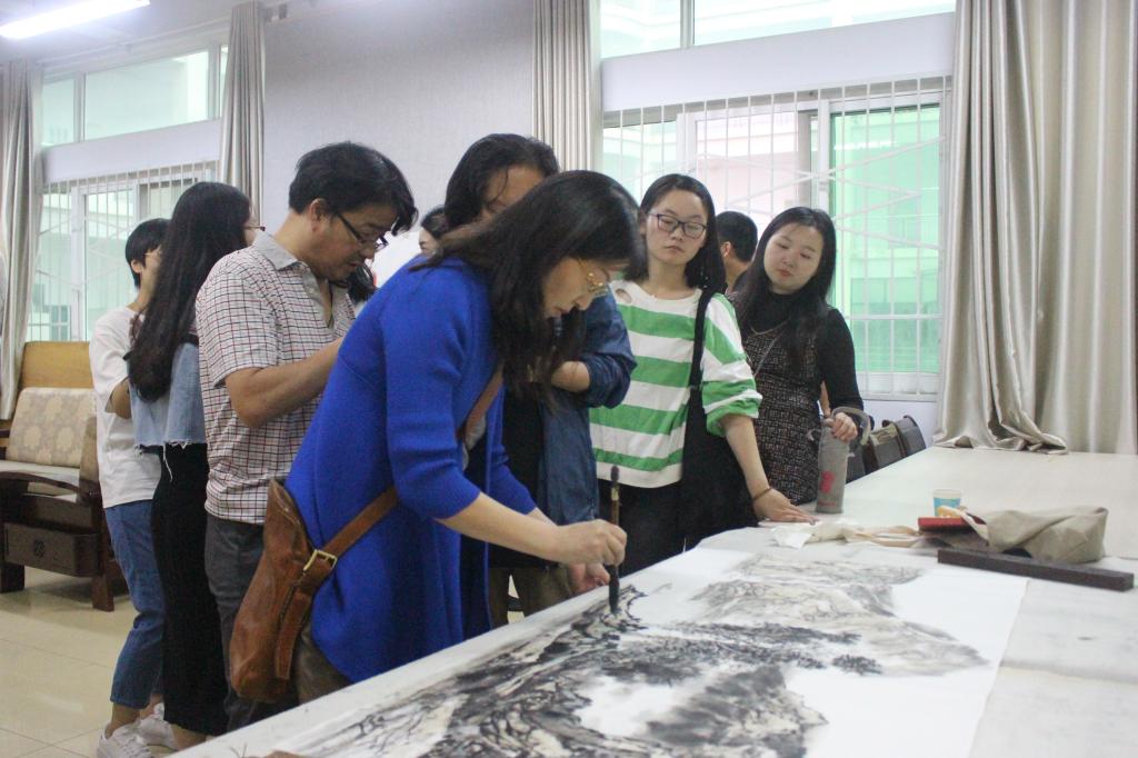 9月15日,应William希尔官网入口邀请,著名画家马国强、房巍、乔云在二楼临摹室举办书画笔会。公司副经理邹东升、张伟,教师代表及研究生共同参加了此次笔会。