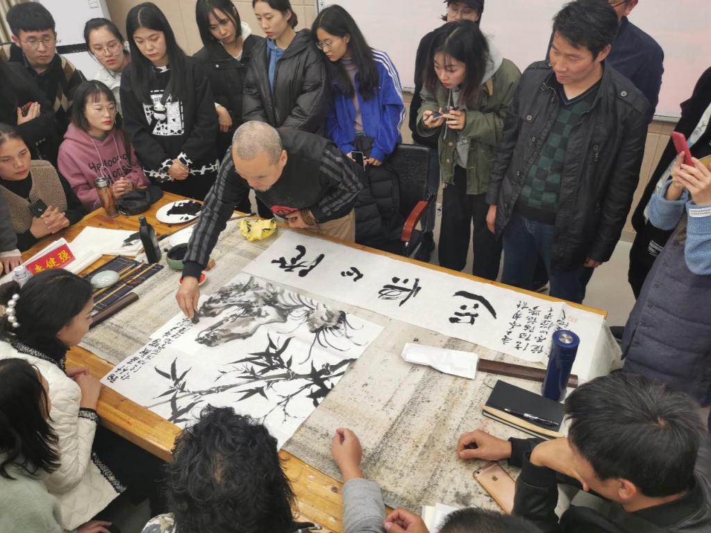 此次示范,现场气氛活跃,同学们不仅开阔了眼界,增强了对山水画的认识,也为同学们创造了一次与李健强教授互动学习、共同研究的机会,充分调动了大家学习山水画的积极性。