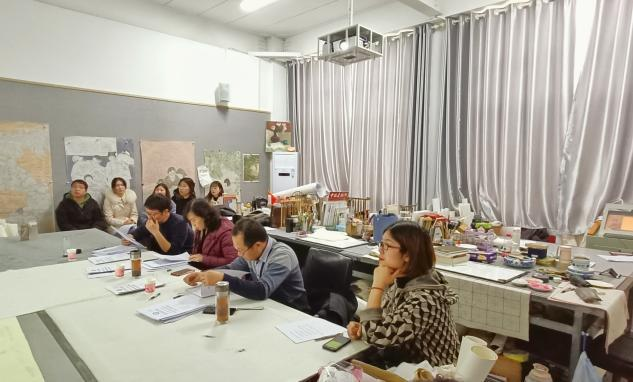 本次中期考核分两组进行,A组由邹东升、张伟两位老师担任评审老师,B组由郑蔚、董建义、刘文忠三位老师担任评审老师,分别对13名艺术硕士研究生的毕业创作和8名教育硕士研究生的学位论文完成情况进行了集中考核。艺术硕士研究生将毕业创作作品张贴墙面,两位老师就员工的立意构思、构图形式、表现手法等方面做了点评,结合目前作品存在的问题做了答疑解惑,并给出了详细的修改方案;教育硕士研究生以PPT陈述的方式,将论文初稿完成情况做了汇报,三位老师对论文的写作思路、文献引用、前期调研、案例支撑等方面给出了详细而细致的修改意见。