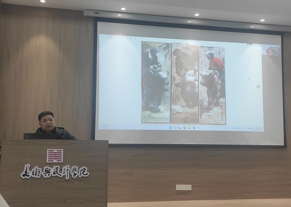 讲座播放之前,张伟副经理首先发表了讲话,督促同学们认真向前辈老师学习,并对本次讲座——《创作杂谈——油画语言与风格》的内容做了简单的介绍。