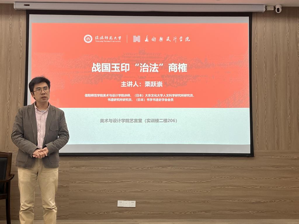 栗跃崇老师旁征博引,从印章理论与实践研究的方向加以分析,提出玉印既是玉器又充分传达出“德信”的理念,为同学们介绍了玉与印的发展历程及深层内涵价值。随后,他对战国时期玉印的风格特色、制作工序进行了详细梳理。最后,栗跃崇老师以自己的论文为例,向同学们详细说明了论文的基本格式及撰写方法,强调写论文时要以充实的资料作为依据,逻辑清晰。