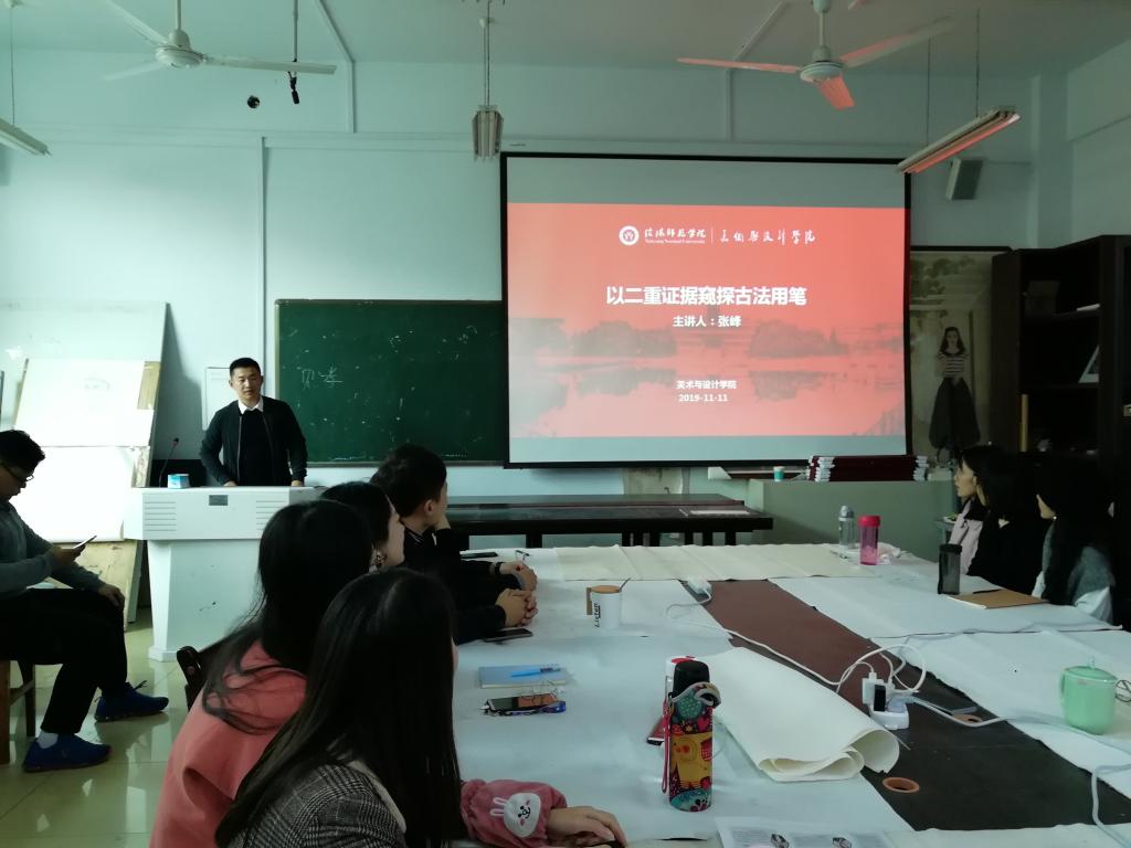 11月11日下午,William希尔官网入口研究生教室座无虚席,研究生学术讲座活动如期举行,张峰老师应邀为公司研究生作了题为“以二重证据窥探古法用笔”的学术讲座,公司全体研究生到场聆听了此次讲座。
