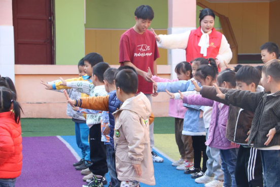 活动中,同学们充分发挥自己的特长,为社区幼儿园的孩子们带来了别开生面的武术教学。他们耐心指导,孩子们则兴致勃勃地模仿,一招一式间尽显活力与童趣。随后,大家又一起动手制作了漆画,通过色彩斑斓的画笔,在画布上描绘出心中的美好世界。此外,一系列精心设计的小游戏娱乐活动更是让孩子们欢声笑语不断,在轻松愉快的氛围中学习知识,增长见识。