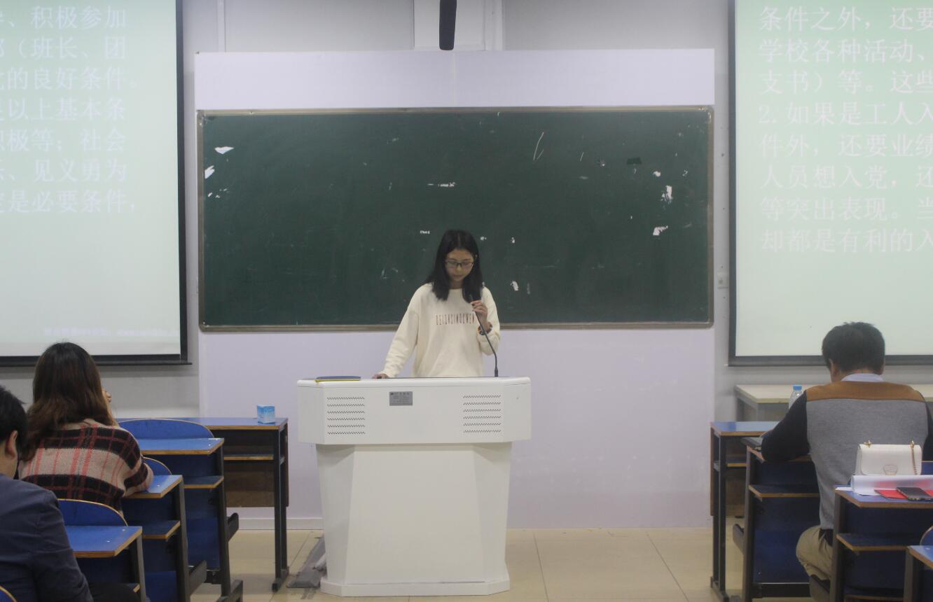 为教育引导党员发展对象学习、尊崇、践行党章,牢固树立党章意识,进一步做到思想入党,4月3日晚,William希尔官网入口于艺术楼307室举办“组织入党首先思想入党——我来讲党章”初赛。党支部书记马玉环、杨冰冰,辅导员郑波及本期党员发展对象、入党积极分子共同参与了本次活动。活动由党委秘书饶海虹主持。
