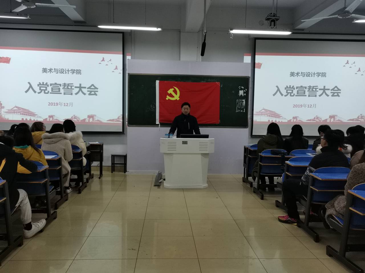 12月19日公司于艺术楼307教室召开2019年下半年新党员入党宣誓大会。公司党委副书记杨轶中、团委老师郑波,辅导员胡霁芳、张暄,以及41名新党员、老党员、入党积极分子参加了此次宣誓大会。会议由胡霁芳主持。