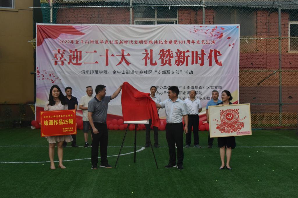 6月28日,公司与金牛山华森社区党支部在多米礼仪幼儿园联合开展“支部联支部”文艺进社区活动,举行了艺术作品捐赠仪式和“喜迎二十大礼赞新时代”庆祝建党101周年文艺汇演。公司党委组织部部长岳宗德、副部长赵晨、公司党委书记兰洋、副书记周刚、金牛山街道党工委书记涂延海、美术学员工第一党支部书记郑波、研究生党支部书记邹青宸、社区党支部成员及当地群众共同参加了本次活动。
