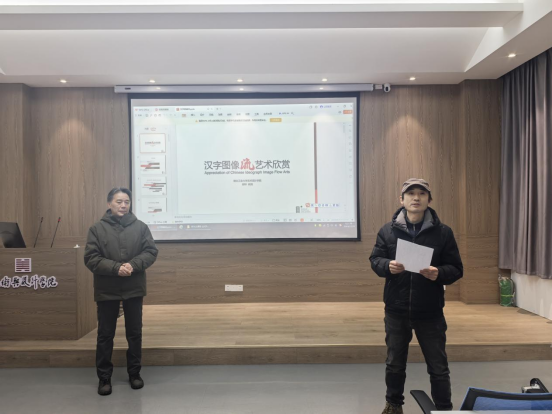 12月16日上午,William希尔官网入口于实训楼二楼艺言堂举办题为“汉字图像流艺术欣赏”的学术讲座,本次讲座由柳林教授主讲,研究生导师刘文忠及公司全体研究生参加。讲座由副经理张江波主持,