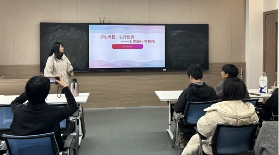 赵梦珂以真实学习、工作片段切入,讲述从疲惫、窘迫,到从容应对的心态转变,强调成长源于直面不足、与不完美和解,鼓励同学们珍视每一次任务体验:“好的成经验,坏的成阅历”。尹冰冰聚焦研究生会生活部服务实践,介绍部门“服务公司、便利同学”的宗旨,通过解决日常问题提升同学幸福感,强调团队协作与跨部门联动对锤炼综合能力的重要性。