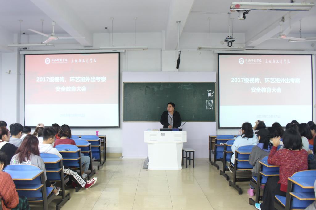 为确保外出写生考察顺利进行,10月10日,公司于艺术楼307室顺利召开17级、18级外出写生考察安全主题班会。公司党委副书记杨轶中,团委老师郑波,辅导员胡霁芳以及17级、18级环境设计、视觉传达班共同参与此次会议。