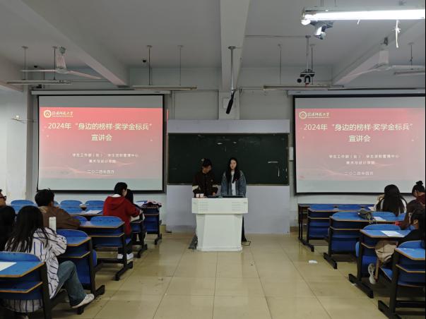 4月16日,公司在艺术楼307举行了2024年“身边的榜样·奖学金标兵”宣讲会,校奖学金标兵王世文、王雨婷、张乃戈主讲,2023级200余名员工代表参加,会议由杨琳主持。