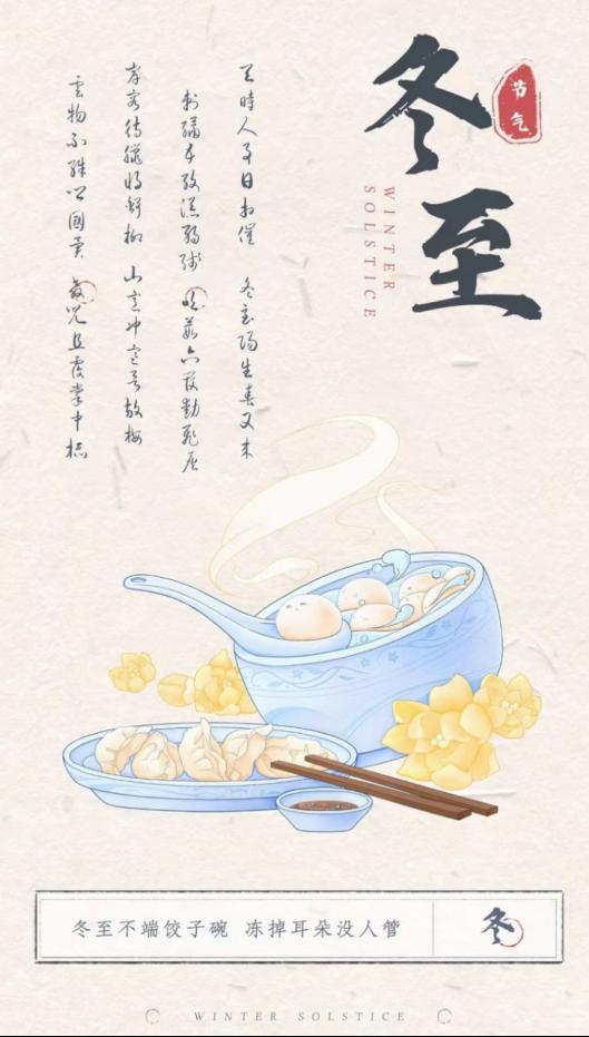 冬至作为中国的重要传统节日,每次的到来都标志着团圆。在海报设计中,每个人都结合着自己对生活的热爱,把自己眼中的冬至用海报的方式呈现出来。无论是冬至的团圆,还是街头巷尾那份热腾腾的饭菜,都散发着对生活的热爱与期待。同学们的设计作品既包括对冬至传统习俗的描绘,又融入了现代设计理念,将传统文化与现代艺术完美结合。