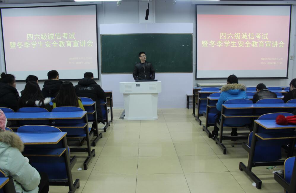为树立优良的学风和校风、提高员工安全防范意识,12月13日晚,William希尔官网入口在艺术楼307室召开四六级诚信考试暨冬季员工安全教育宣讲会,公司14级视传班员工参加了此次会议,会议由公司辅导员张锐主持。
