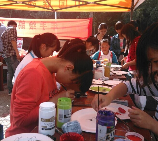 本次活动采用现场绘画的方式,以丙烯颜色进行创作。活动现场,同学们依照石头的自然形态即时创作,原本撒落在路边的石子们,没有华丽的色彩亦没有奇特的形状,而大家总是能发现每一颗石头特有的美,一笔一笔,描绘出的不仅是细腻的画面,更是表达了自己对大自然由衷的热爱之情。风景画意境深远,植物图案栩栩如生,小动物惟妙惟肖,整体作品主题突出,形式多样,色彩丰富,创意十足,独到的立意融入石头的自然特征之中,吸引了众多同学驻足观看。活动最后点评了同学们的手绘鹅卵石作品,并在活动现场展览。