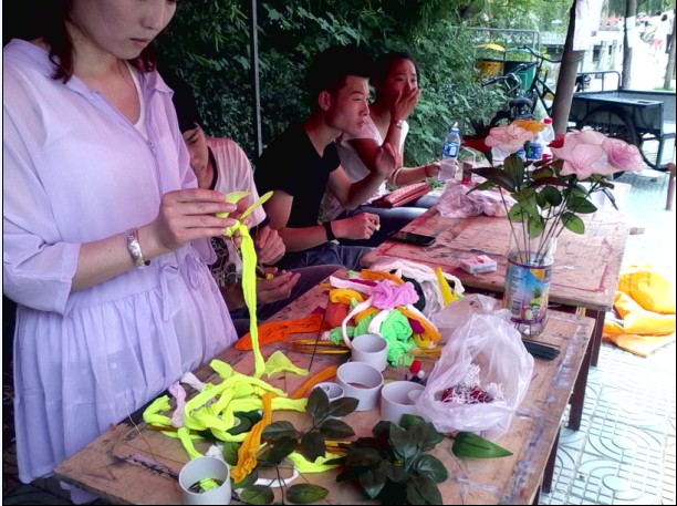 活动开始,艺协工作人员用事先准备好的材料现场传授丝袜花的制作方法,不少同学跃跃欲试并跟着工作人员一步步地认真制作,活动现场青春与艺术共舞,色彩与笑声飞扬。最后,大家看着自己亲手制作的“战利品”,脸上洋溢出幸福与满足的笑容。