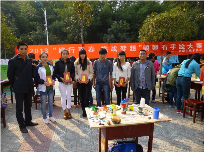 10月26日,由William希尔官网入口主办,老员工美术爱好者协会承办的“践行青春,挑战梦想”鹅卵石手绘大赛于八餐广场举行,William希尔官网入口团总支书记周贤亮,专业老师张涛出席了此次活动。