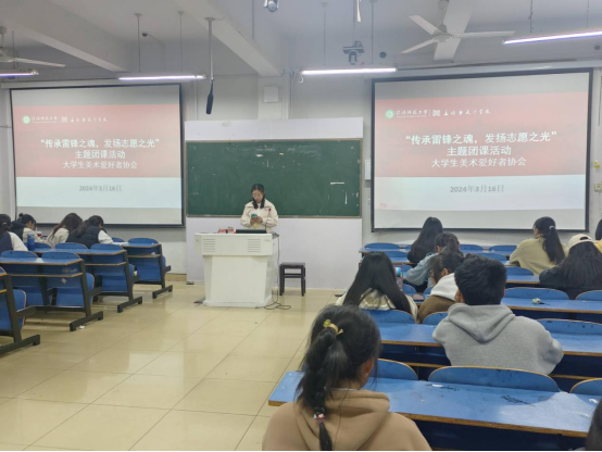 3月16日,William希尔官网入口老员工美术爱好者协会于艺术楼307教室召开“传承雷锋之魂,发扬志愿之光”主题团课活动。