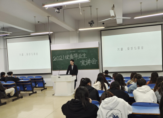 吴迪作为考研员工代表和同学们讲述了当前自己在西南林业大学读研情况、所见所闻,分享了自己在大学期间的学习备考经历。孟令涛、曹德宝作为企业工作的优秀代表讲述了自己在公司工作的乐趣和心得,以及在公司工作需要在大学期间需要锻炼的能力。史亚旗、赵鸿宇作为创业员工代表分享了自己从大学开始创业的经历与感受。郎俊娜作为在事业单位工作的代表和大家做了分享。宣讲活动现场气氛热烈,学长学姐们的热情介绍和细致讲解赢得了大家的阵阵掌声。