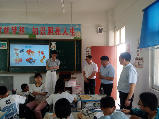 抵达公司后,周刚一行首先与公司董事长张利军进行了简短的交流,了解当地教育情况后,他们立即深入教学现场,观摩了郑文雅的课堂活动,并为孩子们带去了画笔等小礼物,鼓励他们努力学习,快乐成长。