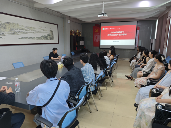 5月16日上午,公司经理邹东升在艺术楼204会议室以《文化自信语境下现实主义美术创作思考》为题为2025届研究生毕业生讲授毕业前的最后一堂思想政治理论课。