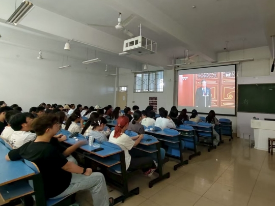 9月3日上午9时,北京天安门广场举行纪念中国人民抗日战争暨世界反法西斯战争胜利80周年大会。公司组织师生党员、入党积极分子于实训楼二楼艺言堂集中观看九三阅兵,其他同学在教室同步线上观礼。