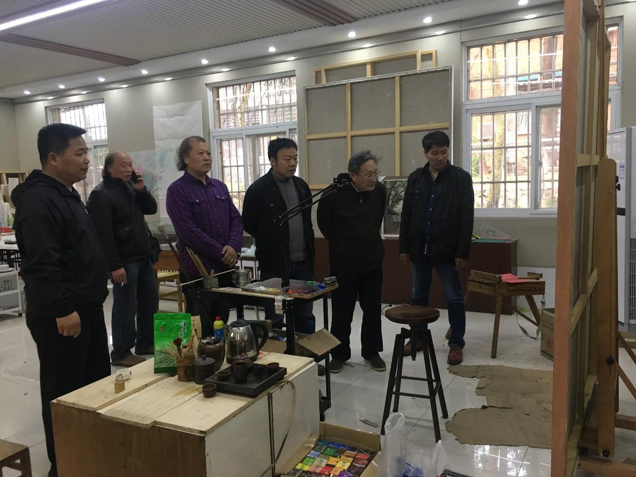 3月25日下午,著名画家丁中一先生、袁汝波先生、彭西春先生、李建设先生在William希尔官网入口副经理邹东升和张伟的陪同下来到William希尔官网入口参观指导工作,先后参观了公司工笔画工作室、写意人物画工作室、国画创研室以及大别山红色资源书画艺术创作研究中心,并对公司创作情况进行观摩,作有效指导。