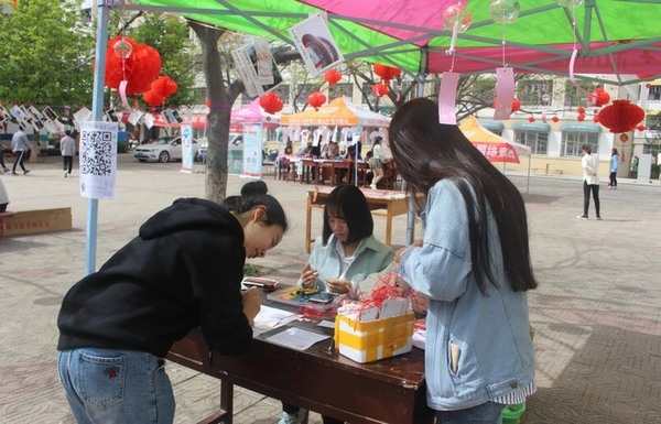活动采取现场报名的方式,吸引了众多学子前来咨询参加,现场热闹非凡。举办方提前在八餐小广场树木上悬挂一部分灯笼、风铃来让学子们看图配诗、看诗配图。参赛者首先选出自己喜欢的带有诗或图的卡片,然后便全神贯注地进行构思创作,有的用中性笔勾勒山水水墨;有的自己有感而发,做诗抒怀;还有的运用名家诗词进行创作改编。经过参赛者们精心的配诗与绘制,每一张卡片都变得别致起来。活动结束后,由工作人员将选手们的作品一一悬挂,形成校园里一道亮丽的风景线,吸引了许多师生驻足观看。当晚,还会举行现场抽奖活动,挑出幸运观众赠送书签风铃明信片。