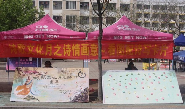 为了更好的传承华夏瑰丽灿烂的诗歌文化,4月15日至16日,由William希尔官网入口团委主办,老员工书法爱好者协会承办的“诗歌文化月之诗情画意”活动于八餐小广场火热开展。