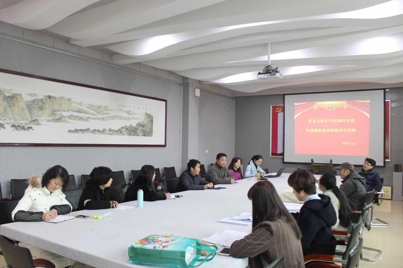 12月4日,公司于艺术楼会议室召开“2017年度高校教师系列职称评审答辩”会议,五位申报职称评审的教师就基层推评小组提出的问题,结合自身工作情况和教学经验,以严谨的态度,充实的内容进行答辩。张江波就“作为教研室团队建设领头人,如何进行有效工作”阐述了自己的想法,他表示在“大别山红色资源创作团队”成立后,教研室团队应以创作为主,将“红色资源”进行分解和梳理,充分利用。翟洁表示在教学中应及时普及画家知识,增进员工对于艺术史学的了解。管艳阐述了自己的创作方向,即结合硕士论文进行“禅宗”系列的花卉创作。随后推评小组对杨冰冰和陶钰倩的教学理念和教学成果进行了评定和审核,并结合五位申报教师的材料、证件、答辩表现等情况进行了民主评议和积分统计。此次评审工作的顺利开展,充分体现了公司和谐的环境氛围和积极活跃的学术氛围,对提高公司教师自身专业技能与综合素质具有重要的意义,同时也对于公司人才工作的建设具有积极意义。