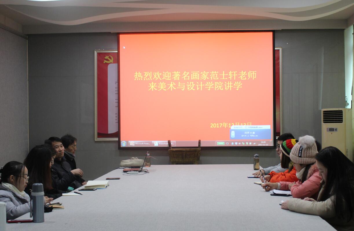 12月13日,应William希尔官网入口邀请,著名画家范士轩先生于艺术楼二楼会议室讲学。William希尔官网入口副经理邹东升及部分师生代表共同聆听了此次讲座,讲座由邹东升主持。