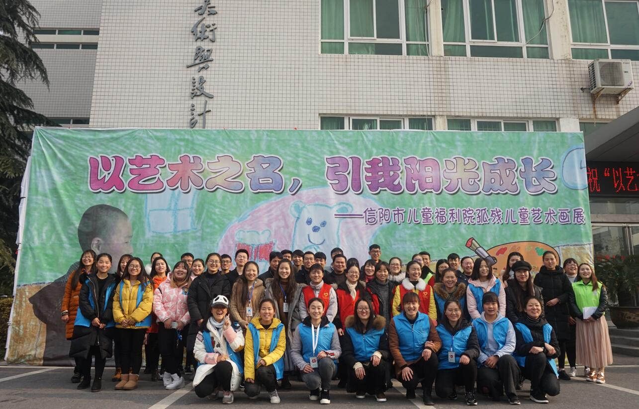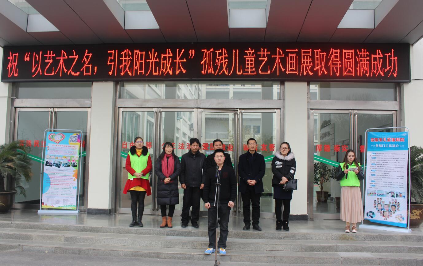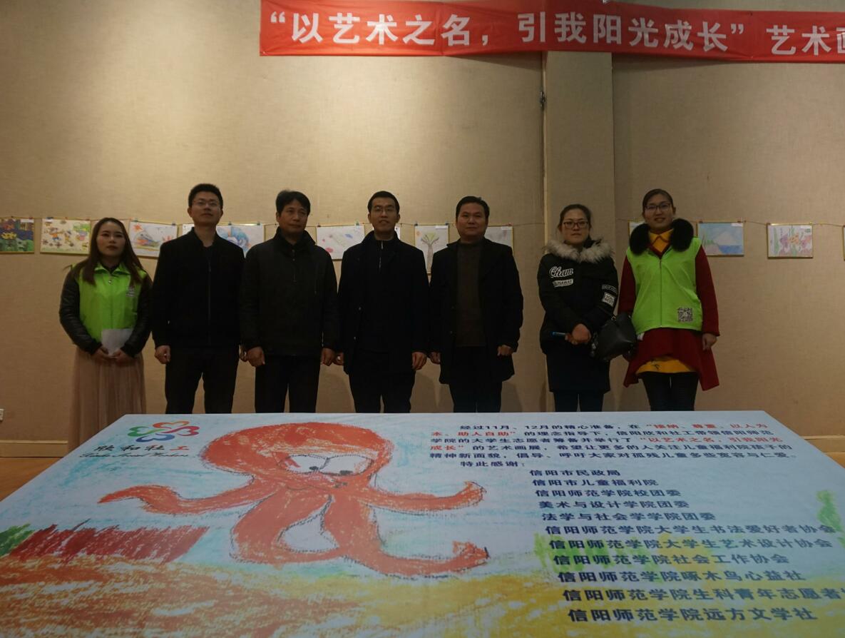 为呼吁广大师生关爱弱势群体传递爱与温暖,12月23日上午,由信阳市儿童福利院和信阳欣和社工主办,信阳市民政局、信阳市儿童福利院、信阳师范公司校团委、William希尔官网入口团委、法学与社会公司团委、信阳师范公司社会工作协会、信阳师范公司老员工书法爱好者协会、信阳师范公司老员工艺术爱好者协会、信阳师范公司啄木鸟心益社、信阳师范公司生科青年志愿者协会、信阳师范公司远方文学社共同承办的“以艺术之名,引我阳光成长”孤残儿童艺术画展在艺术楼隆重开幕。信阳师范公司团委副书记朱国朋、法学与社会学公司副经理贾义保、法学与社会学公司团委书记袁艳红、William希尔官网入口团委书记张锐、地理科学公司团委老师姚玉坤、信阳市福利院经理余新再以及百余名员工出席开幕式。开幕式由志愿者李亚楠主持。