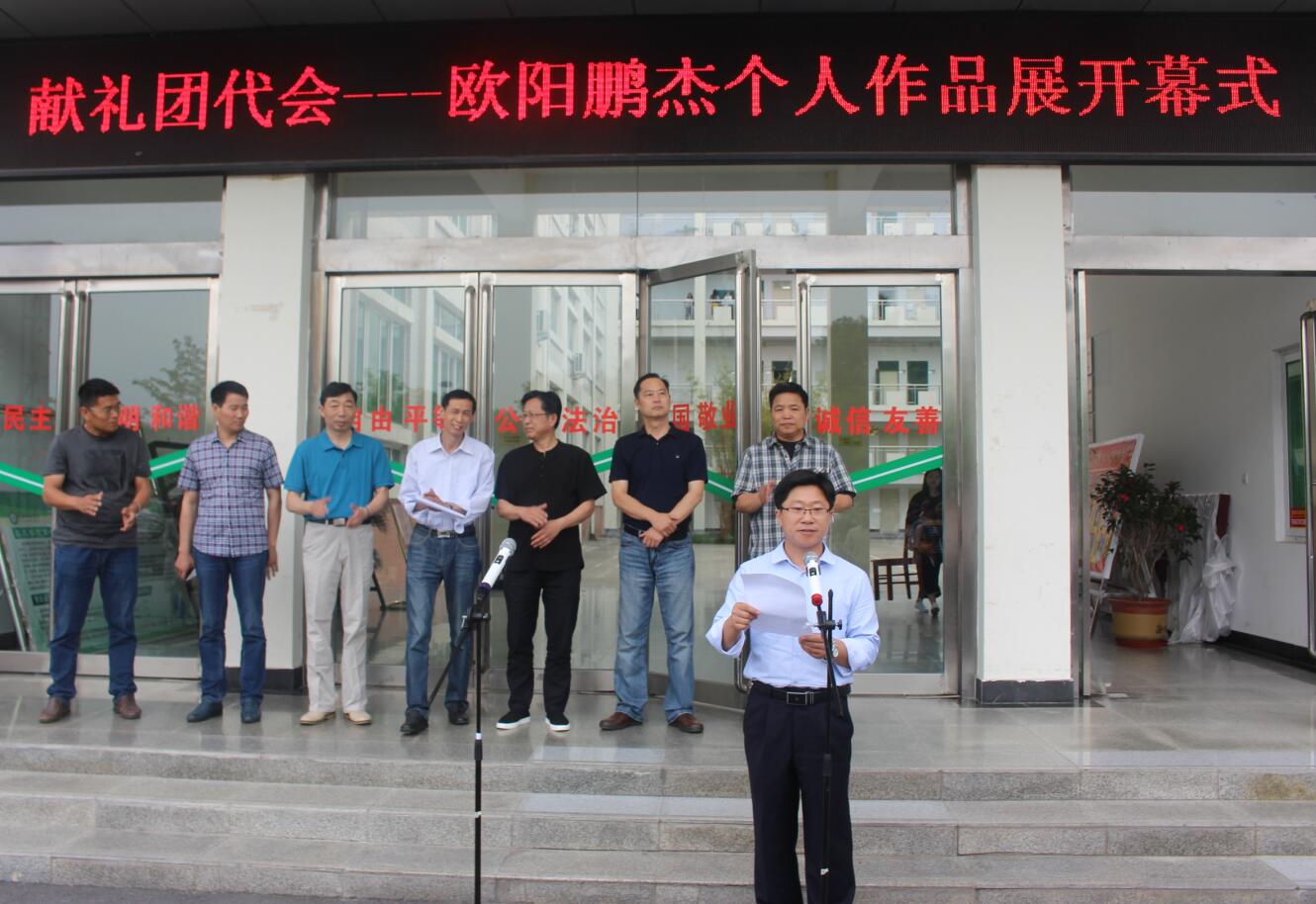 开幕式上,杨轶中首先对欧阳鹏杰个人作品展的基本情况作了简单介绍。随后岳宗德致开幕词,他对欧阳鹏杰在校期间潜心钻研绘画技巧、不断创作及毕业后不忘初心、追逐梦想,以身示范的精神给予了高度评价,并激励学子们以欧阳鹏杰为榜样,坚持梦想,努力学习,不断完善和提高自身的绘画技巧,创作出更多更优秀的艺术作品。欧阳鹏杰对公司的邀请以及大力支持本次展览的举办表示了感谢,他表示本次展览的举办是源于自己大学入学初的梦想,可以在毕业后举办是一个难得而宝贵的机会。他表示只要坚定信念、找准方向、脚踏实地,梦想总是会实现的,在之后的日子里他依旧会为圆珠笔画的推广尽自己一份力量。随后耿劲松主任宣布欧阳鹏杰个人作品展开幕。