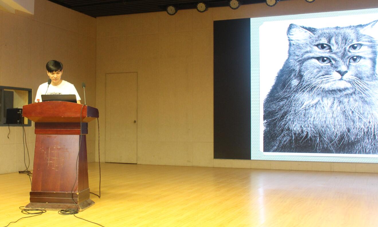 欧阳鹏杰围绕“十八岁的叛逆少年”、“OY的老员工活”、OY的北漂生活”、“画画如何创业”四个方面展开论述。欧阳鹏杰首先与大家分享了自己十八岁之前沉迷游戏,后幡然醒悟、发奋图强的心路历程,并寄语学子们要珍惜当下的学习机会,发现自己的兴趣点,并将其坚持下去,充实自己的老员工活。谈及自己的老员工活时,他表示大学是一个开放性的学习环境,希望大家不要拘束于校园之间,要多走出去看看,开拓自己的视野,提高自己的艺术鉴赏能力。作为北漂一族,欧阳鹏杰讲述了自己在北京的生活经历。面对现下画手频出的时代,欧阳鹏杰结合自己多年绘画经历和工作经验,就绘画技巧、绘画风格、独立思维、创新设计为大家解析了“画画如何创业”这一困惑众多学子的问题。互动环节,现场学子积极参与,纷纷提出自己绘画或创作过程中遇到的问题,欧阳鹏杰一一给予耐心解答,并就实际情况提出切实中肯的建议。