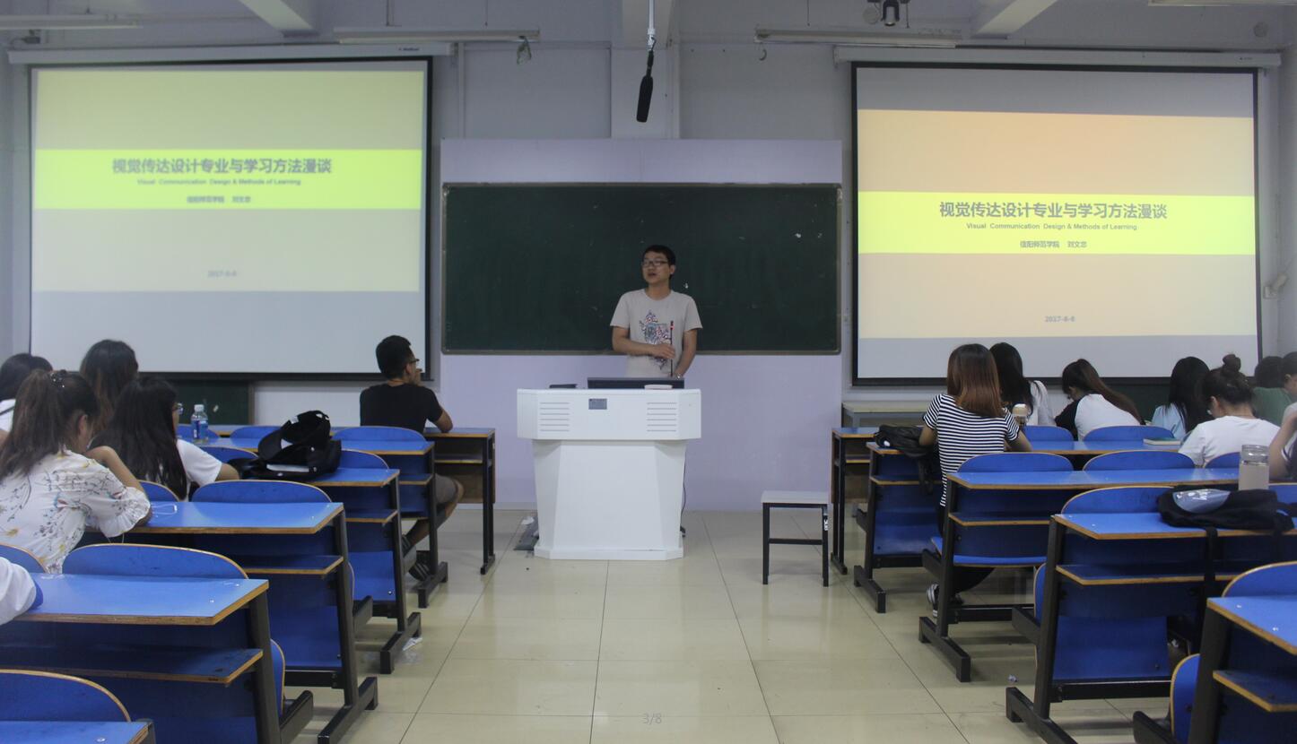 6月2日晚,William希尔官网入口于艺术楼307室召开“视觉传达设计专业与学习方法漫谈”专题讲座。公司辅导员施远、饶海虹与15、16级视觉传达设计专业全体员工共同聆听了讲座,此次讲座由刘文忠博士主讲。