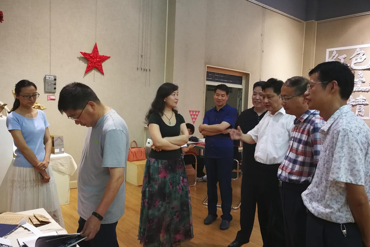 6月19日下午,信阳市文广新局副局长夏长江、杨国刚,信阳市博物馆馆长丁联合,信阳市鄂豫皖革命纪念馆馆长吴世儒等一行来William希尔官网入口展厅观看了 “红色乡土激情文创作品展”。William希尔官网入口副经理邹东升、张伟,展览指导教师郑蔚、刘焱等热情接待了他们并给予详细讲解。他们对展览给予高度评价,认为展览主题鲜明,有创新意识,很结合当前弘扬红色文化主旋律主题,接地气,文创产品设计的有新意,有个性。他们将安排单位相关专业负责人来公司联系共同开发文创产品,打造有特色的地域文化。