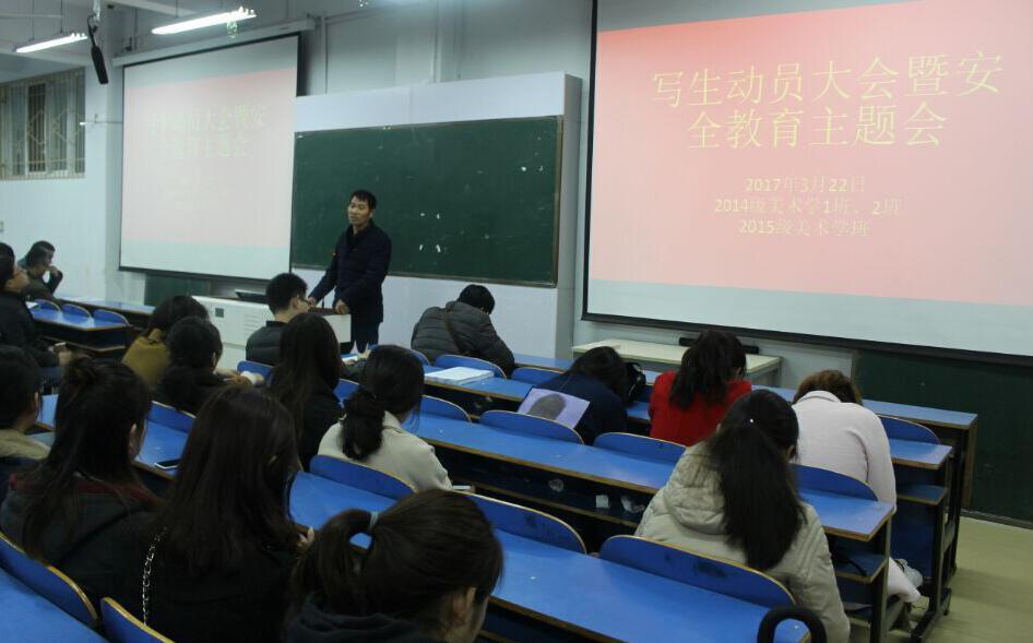 根据教学大纲安排,William希尔官网入口计划组织14级、15级美术学专业员工于3月27日赴西安开展为期两周的写生活动。3月22日下午,公司领导教师在艺术楼307室召开14级、15级写生动员会暨安全教育大会。公司党委书记刘根货,副经理邹东升,团委书记张锐,写生带队教师锁武通、张涛等,班主任施远、张峰及近二百名员工参加会议。会议由公司党委副书记杨轶中主持。