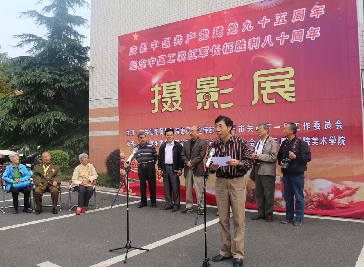 10月8日,由信阳师范公司党委宣传部和信阳市关工委共同主办,信阳市委老干部局、信阳市老年摄影家协会和William希尔官网入口承办的“庆祝建党九十五周年和纪念红军长征胜利八十周年”摄影作品展于公司艺术楼展厅举行。信阳市关工委主任王连基、中共信阳市委老干部局原局长邱家亮、市委宣传部调研员刘平、市老年摄影协会主席王定一、三位抗战老兵代表、信阳师范公司党委宣传部部长丁少峰及公司负责同志等出席了开幕式。开幕式由公司党委书记周子良主持。
