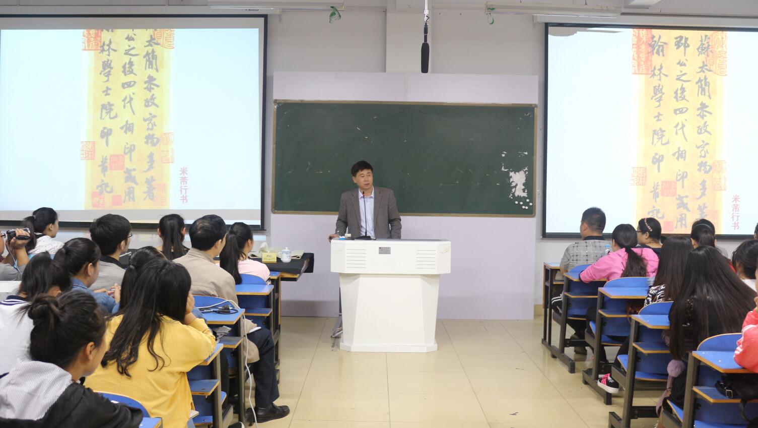 4月14日,中国书法协会会员、河南省书法家协会草书委员会委员、郑州大学教授马健中做客信阳师范公司William希尔官网入口,为师生作了一场关于行书审美与临摹的书法讲座,并与书法教师深入交流了当前书法创作与研究的热点学术问题。公司党委书记周子良、副书记李孝民,副经理张伟等领导、老师及众多学子共同聆听讲座。