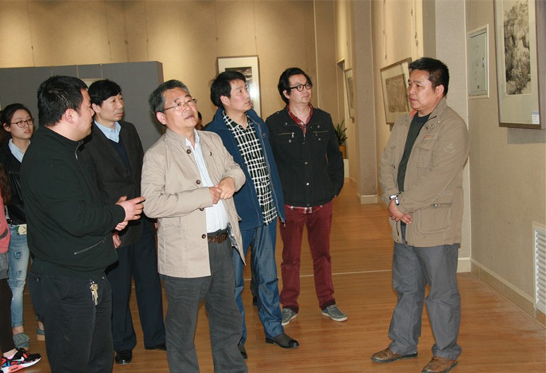 4月17日,由信阳师范公司William希尔官网入口主办的“笔下百态,墨中苍生”陈钰铭绘画作品展暨学术报告会于艺术楼展厅举行,William希尔官网入口经理刘根货、党总支书记周子良、副经理张伟、邹东升陪同画家陈钰铭进行观展。