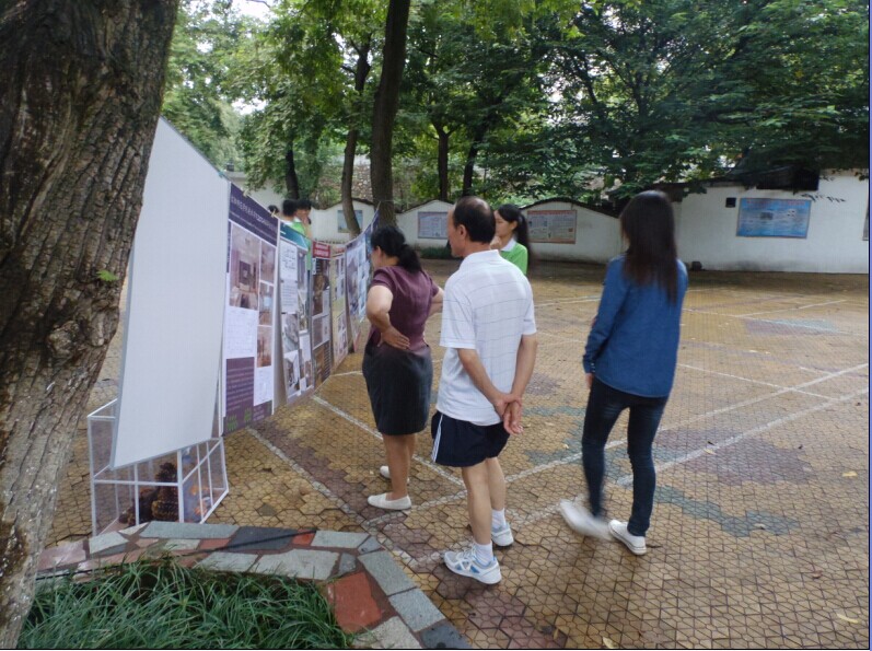 本次展览依托公司参加河南省第十四届科技文化艺术节中绘画、摄影、篆刻、书法、设计等优秀作品,结合公司2014年毕业生优秀毕业作品,实践小组成员充分利用各种资源,在浉河公园进行展览、讲解,并进行现场绘画、书法等活动,现场群众踊跃参观,现场观众络绎不绝,气氛热烈。之后进行的字画赠送活动使小组成员与群众充分互动,公司员工现场作画、写字,赠与围观群众。雅致的山川水墨画,遒劲的行书楷书,得到现场观众的一致好评和热烈掌声。