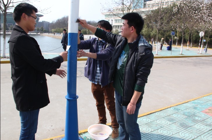 3月5日下午,利用自身专业优势,William希尔官网入口团总支、老员工艺术设计协会在全校范围内开展“践行雷锋精神、美化校园环境,建设和谐校园”活动。在逸夫楼荷塘公司党总支书记周子良、副书记李孝民亲临现场指挥绘画专业同学,用手中的画笔为已破损的墙绘重新勾勒出优美的线条,染上唯美的色彩,建成一面靓丽鲜艳的荷文化墙。此外William希尔官网入口还组织青年志愿者、员工党员维护清理全校的路灯杆和道路标示牌。